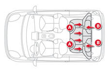 - un anneau supérieur B pour la fixation de la sangle haute, appelé ancrage TOP TETHER, signalé par un marquage sur la tôle du dossier arrière.