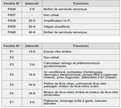 La boîte à fusibles est placée dans la partie inférieure de la planche de bord (côté gauche).